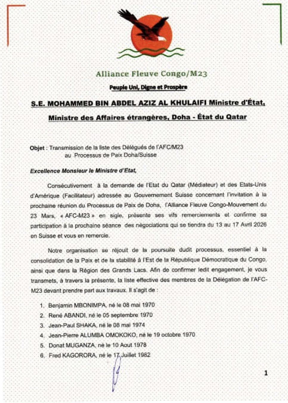 Cette affaire intervient dans un contexte marqué par une forte sensibilité autour de la composition des listes d’experts liés aux négociations de Genève, où chaque nom cité suscite désormais des réactions institutionnelles et politiques. Ci-dessous, la liste des membres composant la délégation de 12 personnes dont 6 experts figurant Jean-Félix Mupande Kapwa et Claude Ibalanky Ekolomba.